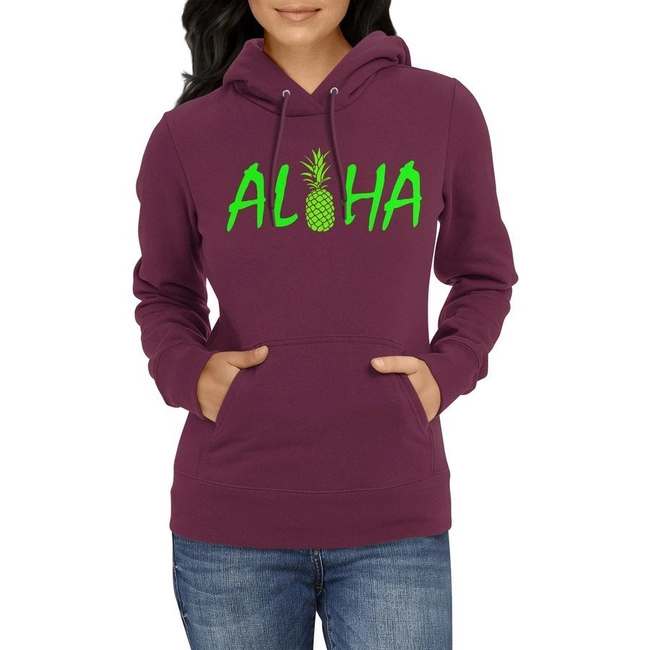 - Bluza z napisem ALOHA i słodkim ananasem idealnie wpasuje się w wypoczynkowy klimat. To świetny wybór na wakacyjne wyjazdy oraz chłodne letnie wieczory.