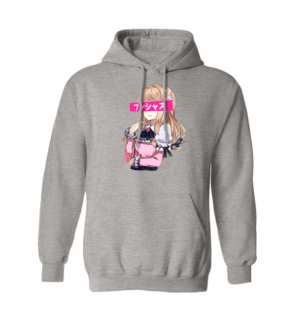 Bluza z kapturem ANIME WAIFU z japońskim napisem SZARA
