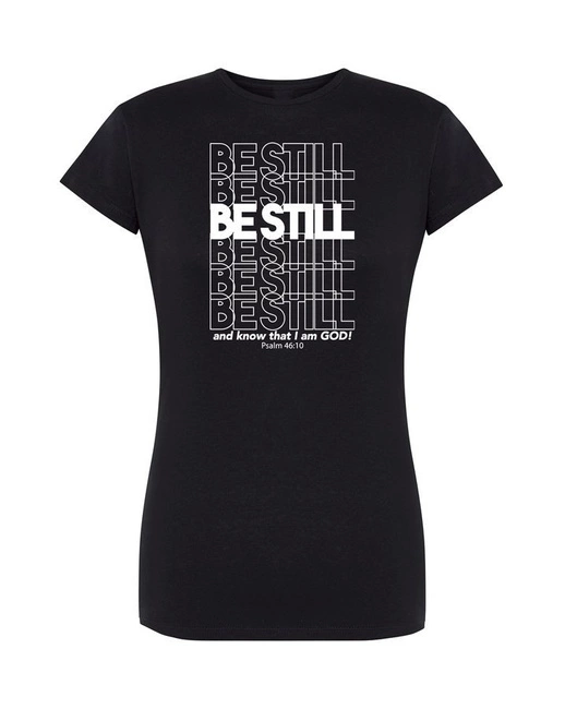 • Oryginalna koszulka z nadrukiem fragmentu z Księgi Psalmów 46:10 w języku angielskim.