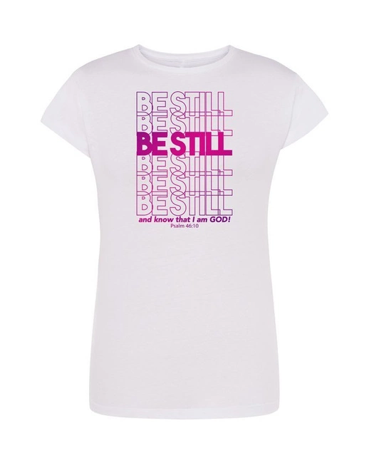 • Oryginalna koszulka z nadrukiem fragmentu z Księgi Psalmów 46:10 w języku angielskim.