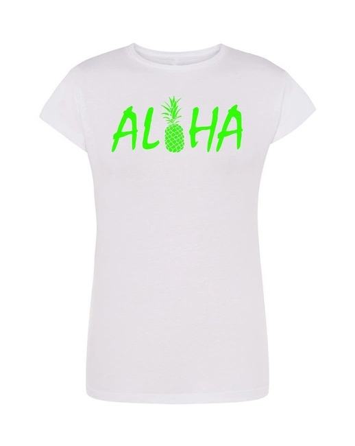 - Koszulka z napisem ALOHA i słodkim ananasem idealnie wpasuje się w letni klimat. To świetny wybór na wakacyjne wyjazdy oraz upalne dni.