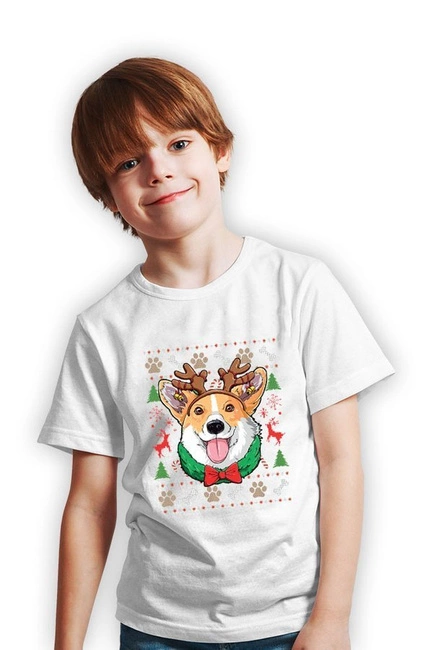 Koszulka świąteczna dziecięca ŚWIĄTECZNY CORGI