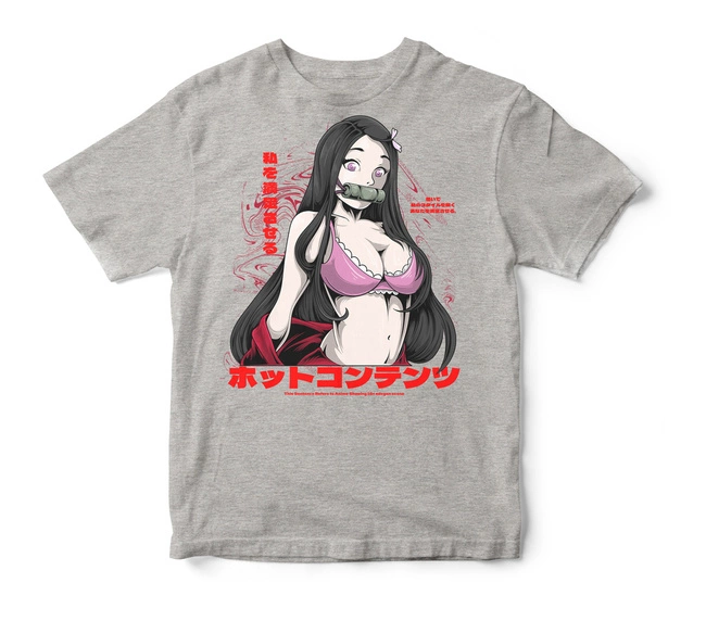 Koszulka anime bez cenzury Nezuko Demon Slayer w kolorze szarym