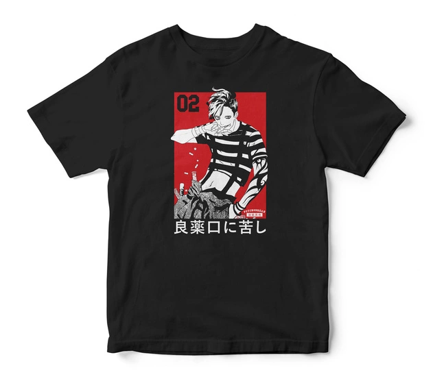 Stylowy t-shirt z mangowym wizerunkiem szaleńca o niepozornym spojrzeniu. Jeśli lubisz takie tajemnicze klimaty, to koszulka właśnie dla Ciebie!