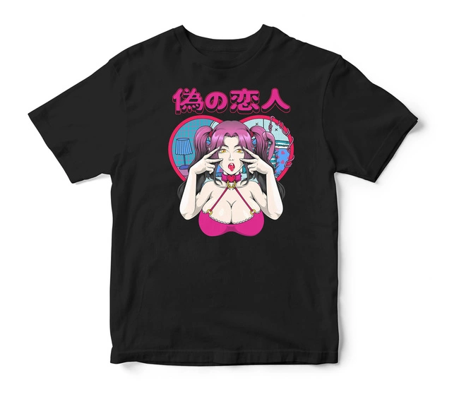 Koszulka męska czarna anime dziewczyna Japonia