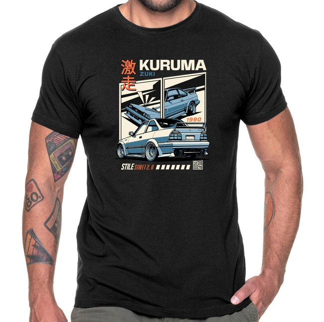Dla tych, którzy wierzą w moc japońskich maszyn, koszulka KURUMA to idealny wybór! Nazwa „Kuruma” to japońskie słowo oznaczające „samochód”, które symbolizuje pasję do motoryzacji i kultury motoryzacyjnej Japonii. Koszulka z tym motywem to hołd dla japońskiego inżynierskiego kunsztu i niepowtarzalnego stylu.