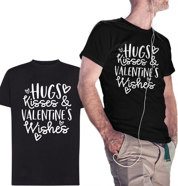 Koszulka męska na Walentynki HUGS KISSES & VALENTINES WISHES