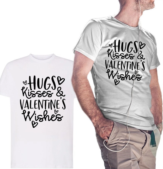 Koszulka męska na Walentynki HUGS KISSES & VALENTINES WISHES