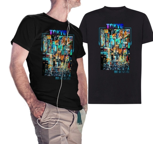 - Chcesz wyróżnić się w tłumie? Wyrażaj siebie dzięki naszym niepowtarzalnym wzorom! Koszulka męska z nadrukiem TOKYO. Swobodny i wygodny krój wspaniale sprawdzi się przy codziennych stylizacjach.