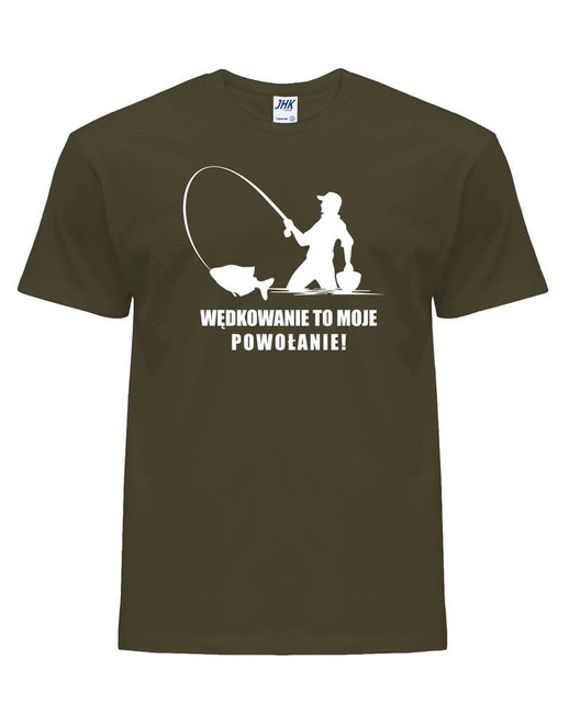 T-shirt męski dla wędkarza WĘDKOWANIE TO MOJE POWOŁANIE w kolorze khaki